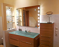 Mit Spiegeln kann man zaubern – Spiegel sind ein altbewährtes Mittel, um einen Raum größer erscheinen zu lassen, um ihn hell, klar und einladend zu gestalten. Mit einer Spiegelwand kann ein Raum sogar optisch verdoppelt werden. Ein Badspiegel muss nicht nur funktional sein – ein speziell für Sie angefertigter Spiegel kann dem Aussehen Ihres Badezimmers das entscheidende Detail hinzufügen. Schlicht oder edel, mit oder ohne Rahmen – lassen Sie sich von uns beraten, wenn Sie einen individuell nach Ihren Wünschen angefertigten Spiegel benötigen!
